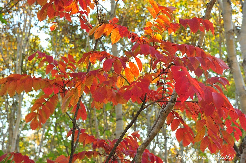 でもよく見ると、岸壁の草が紅葉し、赤松の幹は真っ赤に染まっていたため、