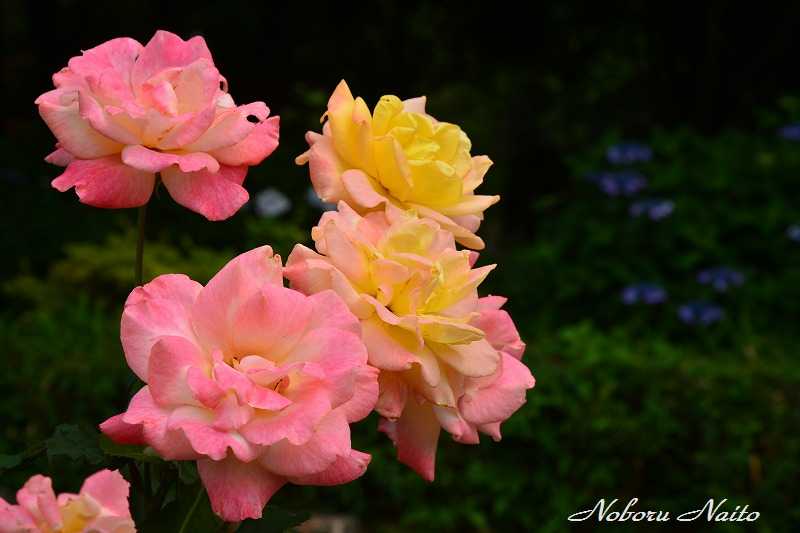 アジサイは梅雨時に咲く代表的な花で、雨の滴を身につけたアジサイは絵になります。ただアジサイを撮るだけでは面白くないので、アジサイと何かをからめて撮るようにしています。アジサイは開花期が長いので、7月中旬頃まで楽しめそうです。